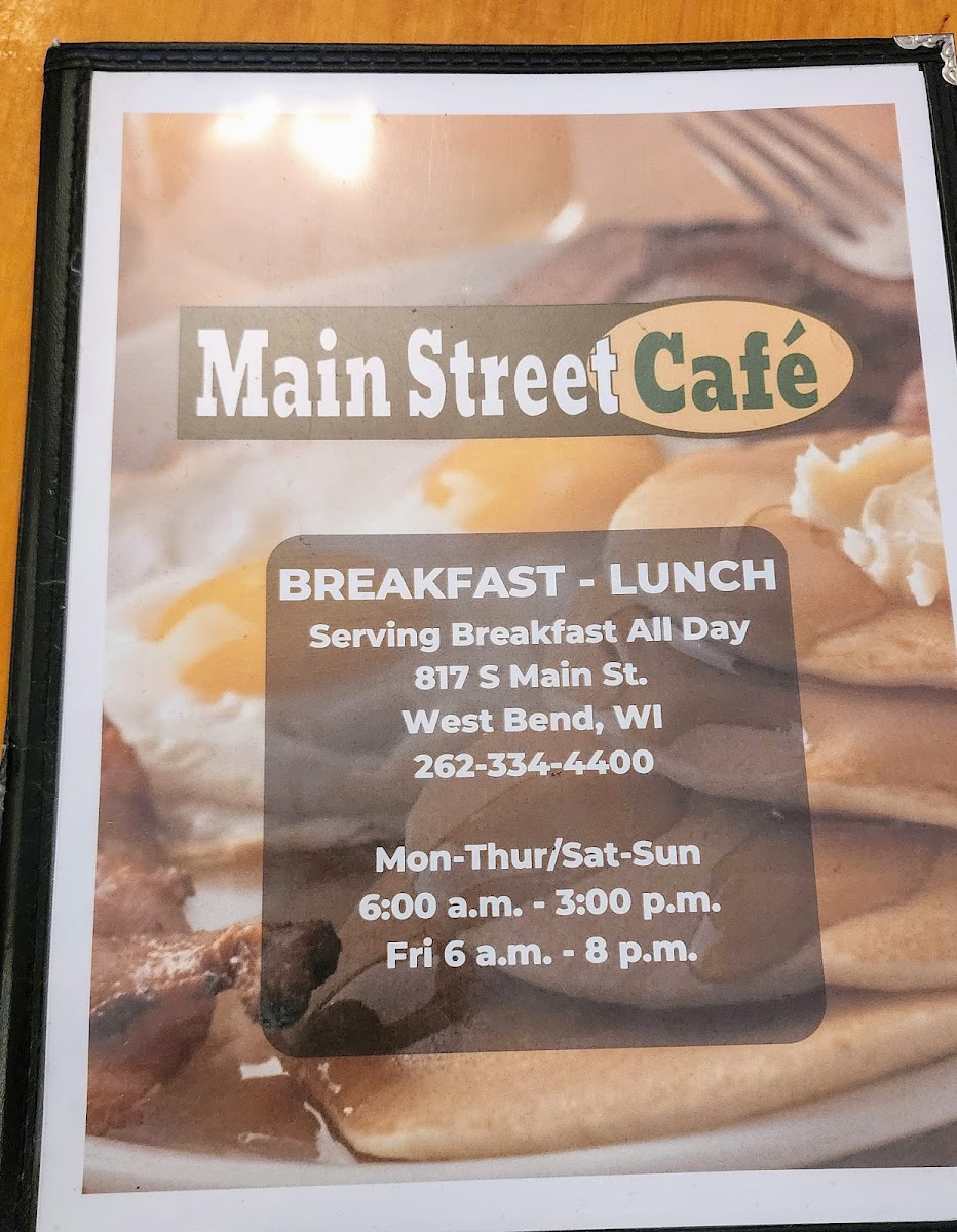 Located at 817 S Main St in West Bend, WI, Main Street Cafe is a cozy haven for food lovers seeking a delightful breakfast and brunch experience. With a menu featuring a variety of delectable offerings, this charming eatery has quickly become a beloved spot for locals. Highlights include the mouthwatering Caramel Apple Pecan French Toast and Old Fashioned Buttermilk Pancakes, both bursting with flavor and warmth. For those who prefer a savory edge, the Chicken Dumpling and Chicken Stir Fry are excellent choices that showcase the kitchen's culinary flair.